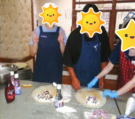 先日、コスモスにて利用者の皆さんとクレープ祭りを開催いたしました! 3種類のソースから選んで、自分好みにホイップ、ソースを付けて包みました。 みなさんクレープ作りは初めてのようでしたが、とてもうまく出来ました! ごちそうさまでした!!